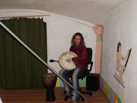 Šamanský buben a rytmus, kterým se na něj hraje, má obrovský tah na naše vědomí. Je to mocný nástroj, otevírá přechody a skrze něho proudí duchovní energie do tohoto světa. Je to obrovský zesilovač. Často léčíme zvukem, hlasem a skrze krystaly. Používáme šamanské nástroje a hlas, který se nechává vést, aby mohl téci do míst, kde léčí, regeneruje a nastoluje harmonii. Zpívám skrze šamanské tóny s pomocí bubnu, zvonu anebo jen mého hlasu, který najde bloky ve fyzickém těle i v těch jemnohmotných. Zvukem a tóny se odstraňují z těla dotyčného člověka, vylaďují se, zprůchodňují a léčí se jeho energetická centra.